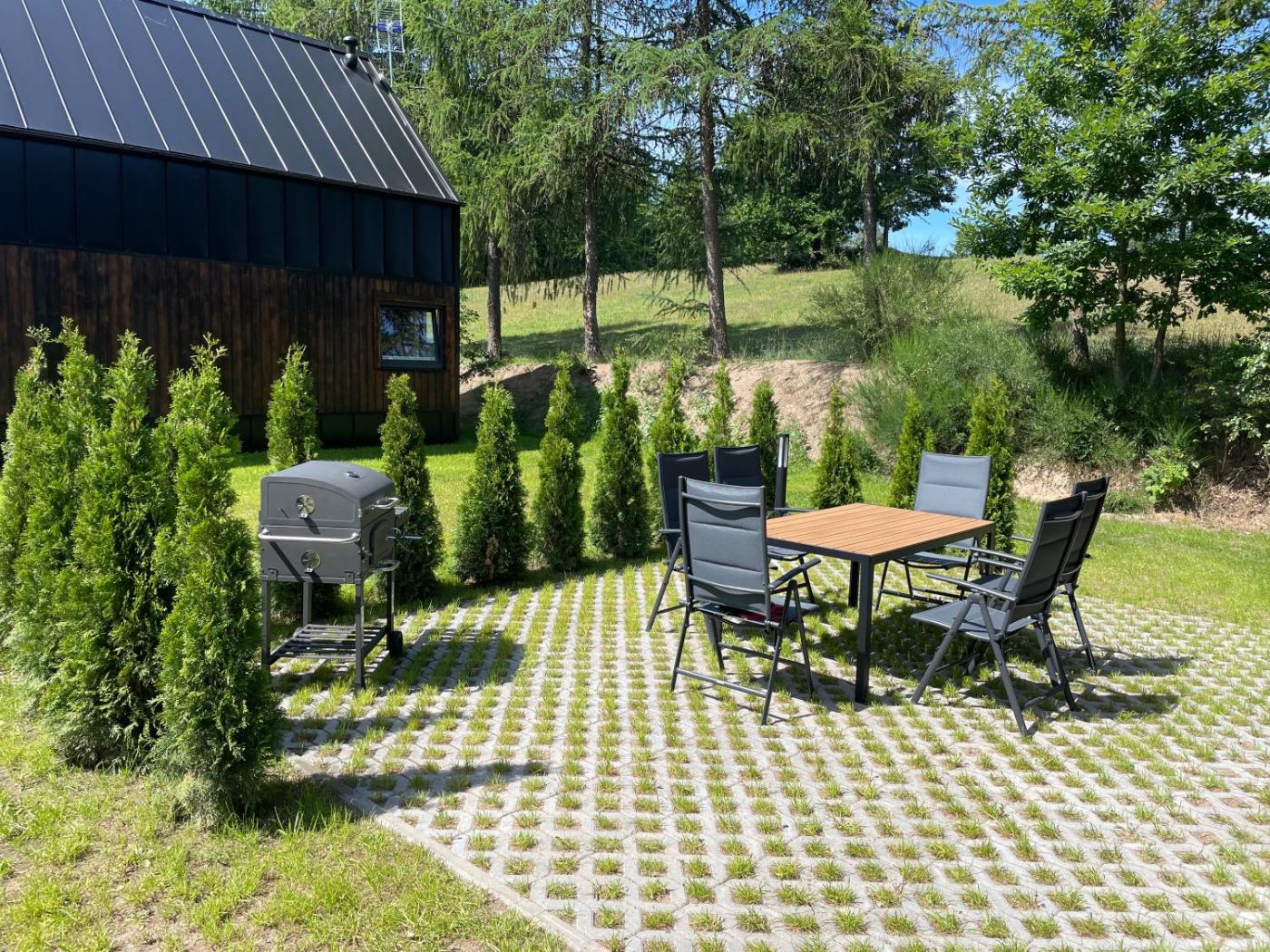 Dom wakacyjny. This holiday home provides a fireplace. This air-conditioned holiday home comprises 1 living room, 1 separate bedroom and 1 bathroom with a shower. Guests will find a stovetop, a refrigerator, kitchenware and an electric kettle in the kitchen. The holiday home also provides guests with a barbecue. This holiday home features a dining area, a wardrobe, a flat-screen TV and a terrace. The unit offers 2 beds. Dom wakacyjny - 4 osobowy. Powierzchnia pokoju ok.: 70 mkw. ;
