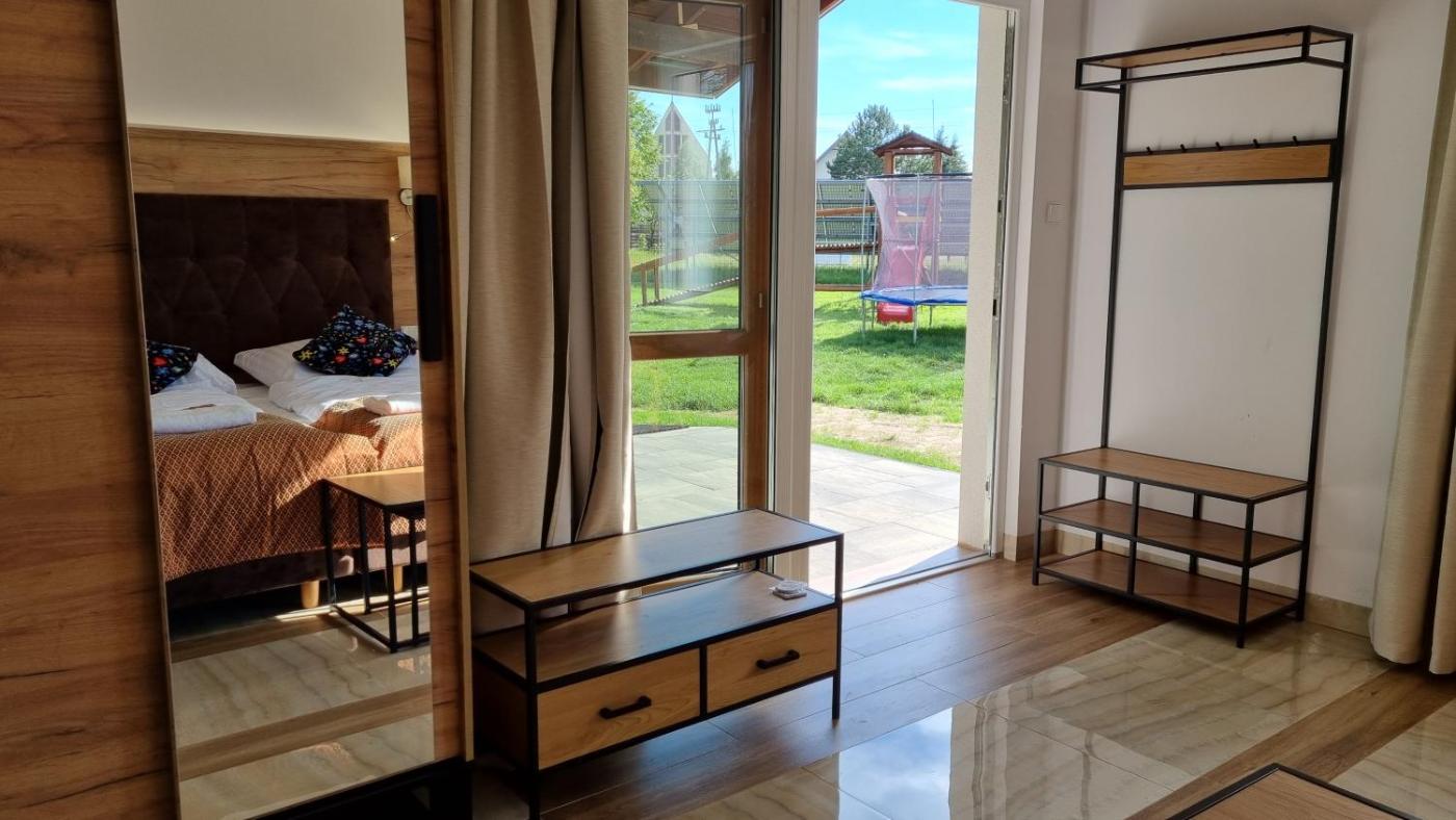 Domek typu Superior. Featuring a private entrance, this air-conditioned chalet comprises 1 living room, 1 separate bedroom and 1 bathroom with a walk-in shower and a hairdryer. Meals can be prepared in the kitchen, which comes with a stovetop, a refrigerator and kitchenware. Boasting a terrace with lake views, this chalet also provides a tea and coffee maker and a flat-screen TV. The unit offers 4 beds. Domek - 5 osobowy. Powierzchnia pokoju ok.: 35 mkw. ;
