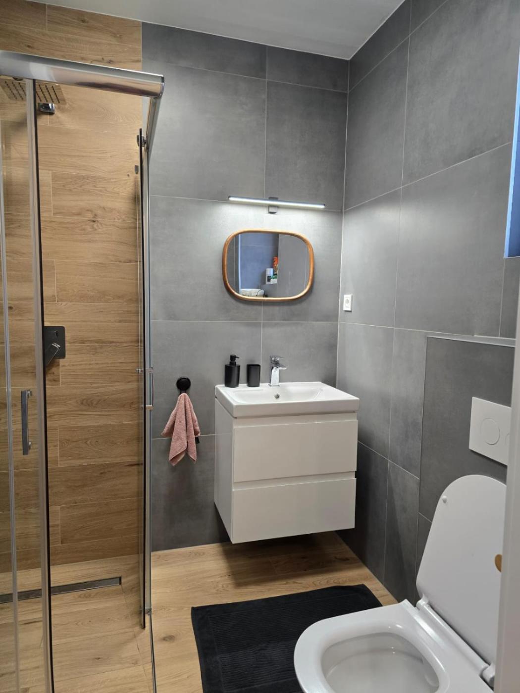 Dom z 3 sypialniami. This holiday home features a fireplace. Guests will find a stovetop, a refrigerator, a dishwasher and an oven in the kitchenette. The holiday home also comes with a barbecue. This air-conditioned holiday home has a shared bathroom, a tea and coffee maker, a dining area as well as a terrace. The unit has 5 beds. Dom wakacyjny - 8 osobowy. Powierzchnia pokoju ok.: 70 mkw.